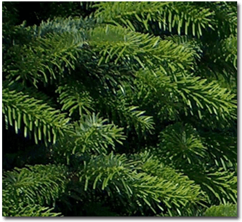 Nordmann Fir Christmas Trees (Abies nordmannia) possess a unique appearance from other Christmas tree species. With their thick, symmetrically arranged branches Nordmann Fir are perfect for displaying heavy or large ornaments such as glass and heirloom pieces. Nordmann Fir Christmas trees will have little or no needle loss throughout the holiday season. The Nordmann Firs dark green needles are short and smooth, and are covered in a waxy cuticle which prevents water loss. This coating gives Nordmann Fir a minimal fragrance so it is recommended when choosing a Christmas tree for individuals with allergies. Nordmann Fir Christmas tree needles have a subtle light-blue underside which lights up the appearance of the soft layered needles